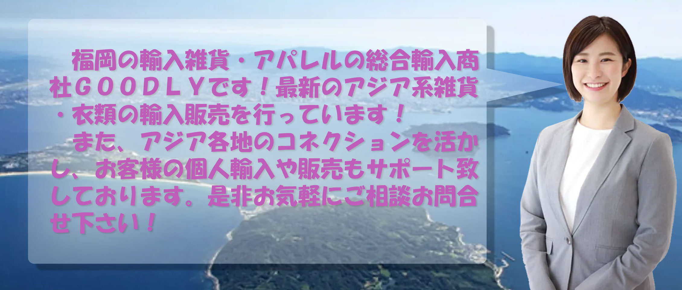 アジア系雑貨・衣類の総合ネットショップとして営業しております。流行りの商品をいち早く輸入して皆様にお届けするのはもちろん、ネットで見かけた海外のこんな商品を取寄せてくれないかな、というご要望にもお応えします。