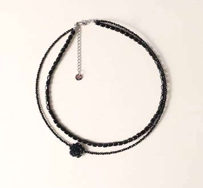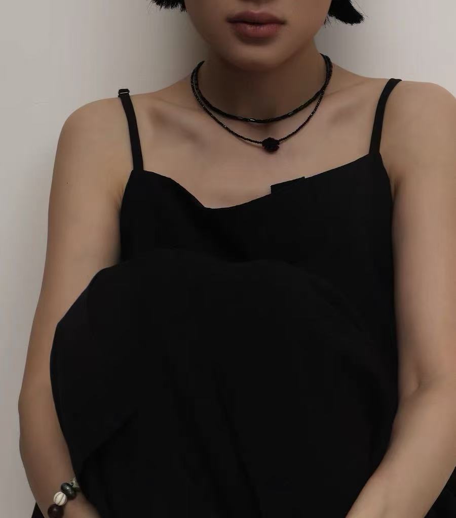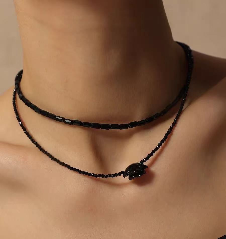 軽やかで上品な小粒ネックレス|ガラス&樹脂&チタン鋼・鎖骨見せ・約33+5cm